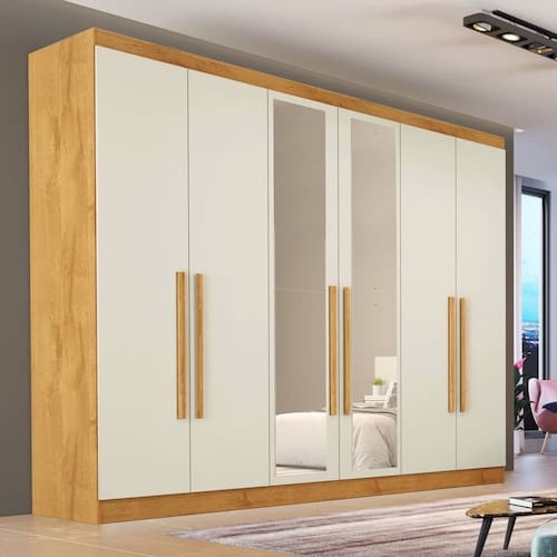 Guarda Roupa Casal com Espelho 6 Portas Oslo Made Marcs - Off White
