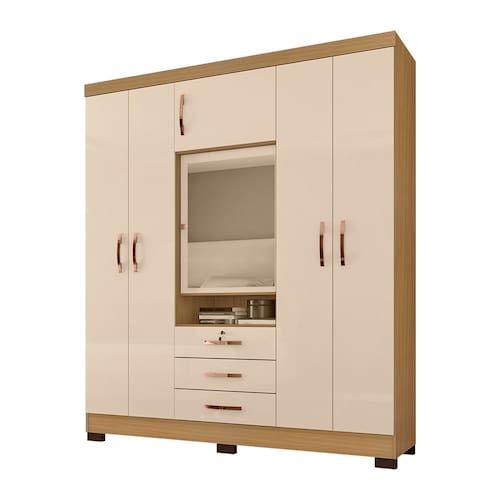 As 6 portas desse guarda-roupa são ideais para acomodar todas as suas roupas e acessórios de forma organizada. Com prateleiras bem distribuídas e cabideiros resistentes, você terá espaço suficiente para guardar tudo o que precisa. Além disso, o espelho nas portas agrega valor, permitindo que você se vista e se prepare com comodidade e estilo.