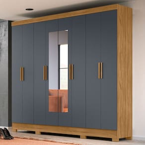 Robusto e imponente, o Guarda Roupa Casal com Espelho 8 Portas 236cm Ágata M07 Freijó/Cinza, da Mpozenato, é a opção perfeita para você que busca um guarda roupa grande e, ao mesmo tempo, com design moderno.