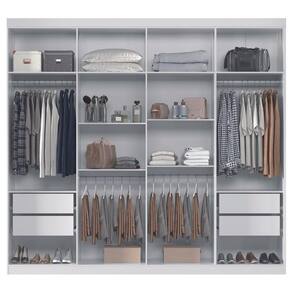 Feito em MDF, com quatro gavetas com corrediças telescópicas garantindo um deslizamento suave e silencisoso, possui dez prateleiras amplas e espaçosas podem ser utilizadas para guardar edredons, cobertores, caixas e sapatos