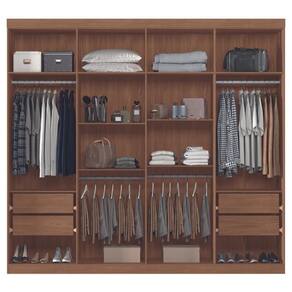 Feito em MDF, com quatro gavetas com corrediças telescópicas garantindo um deslizamento suave e silencisoso, possui dez prateleiras amplas e espaçosas podem ser utilizadas para guardar edredons, cobertores, caixas e sapatos