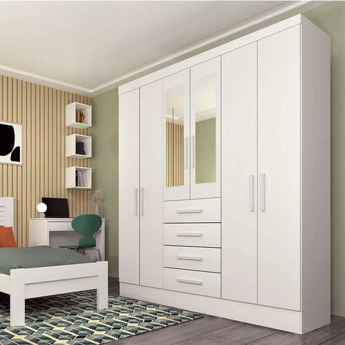 guarda-roupa casal com espelho arizona 6 pt 4 gv neve - Branco