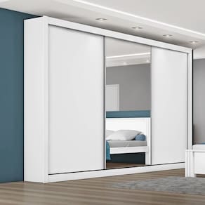 Guarda Roupa Casal com Espelho Costas 3mm - Toro - Euro MóveisO Guarda Roupa Toro é uma união de qualidade, tamanho e beleza. Este Guarda Roupa é perfeito para seu espaço, possui excelente espaço interno com 6 gavetas com corrediças telescópicas que permite maior aproveitamento interno, e duas gavetas possuem chaves para armazenar com segurança seus pertences. Possui compartimento para malas e roupas de camas, prateleiras fixas e prateleiras removíveis , para pode acomodar roupas longas e compartimento para calçados. Para maior durabilidade possui costas grossas parafusada de 3mm, trilho superior e inferior em alumínio. A porta central espelhada possui molduras de alumínio, as portas laterais de madeira possuem puxador perfil de alumínio. Possui roldana com molas, nesse sistema a porta não sai do trilho. É o guarda ideal para você! Confira e aproveite!Faz parte deste ambiente:Guarda Roupa Casal com Espelho Costas 3mm - Toro - Euro MóveisObs: Objetos de decoração não inclusos.Particularidades do guarda-roupa:Características:- 100% MDF- Gavetas com corrediças telescópicas- Duas gavetas com chave- Portas espelhadas com moldura em alumínio- Cabideiros e calceiros espaçosos em alumínio- Modulado para roupas longas- Roldanas com sistema de amortecimento e regulagem- Prateleiras removíveis-Trilho superior e inferior em alumínio- Costa parafusada 3mm- Espelhos com película de segurança Dimensões:Altura: 2,35metrosLargura: 2,75 metrosProfundidade: 63,5 centímetrosInformações Importantes:-O envio desse produto é feito através de transportadora.-Produtos podem apresentar diferenças de tonalidades entre a foto na tela e o produto real, devido a calibração de cor de tela.-Limpar com flanela ou pano macio. Não utilizar álcool. Não utilizar produtos abrasivos ou corrosivos.-Nós prezamos pela qualidade da entrega em primeiro lugar, trabalhamos com transportadoras altamente selecionadas e os melhores materiais de embalagem.-A montagem é de total responsabilidade do comprador. Antes de comprar, verifique o espaço disponível para a montagem.-Certifique-se de que o produto caiba em elevadores e vãos de escadas, não fazemos içamentos. Quaisquer despesas deste tipo ficam a cargo do cliente-Garantia de 3 meses contra defeitos de fabricação.