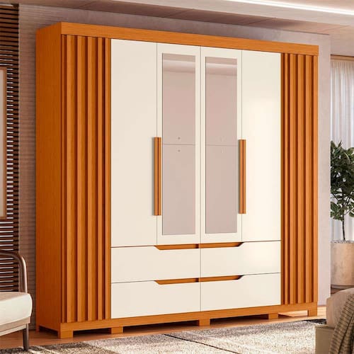 que tal o guarda-roupa doble?na hora de colocar as roupas e sapatos em ordem é sempre uma boa ideia poder contar com móveis amplos e munidos de compartimentos que acomodem tudo o que precisamos. por isso o guarda-roupa doble é a escolha perfeita para o seu lar: com gavetas que recebem roupas dobradas enquanto os cabideiros deixam as peças mais longas livres de amassados, ele também tem nichos para apoiar as roupas de camas, caixas organizadoras e o que mais você precisar deixar por perto para simplificar a rotina. as portas têm puxadores alongados que vão deixar a decoração com um toque de bom gosto muito especial e diferenciado, enquanto o espelho te permite sempre ter onde checar o visual antes de sair. já a coloração é harmônica e vai cair superbem com as roupas de cama e outros móveis que escolher para compor seu cantinho. Marca: Modern