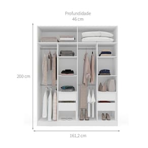 Que tal o Guarda-Roupa Porto? Manter o quarto organizado ou até montar um closet em cômodo separado é fundamental para uma rotina prática, e o Guarda-Roupa Porto será seu grande aliado nessa tarefa. Com tamanho perfeito para ser dividido por um casal, ele tem compartimentos para todos os itens de vestuário, desde os pequenos e dobráveis até os maiores que precisam ir ao cabideiro. Enquanto isso, por fora, o visual atemporal e charmoso é simples de combinar com tudo e criar uma decoração de encher os olhos, como você sempre sonhou para sua casa. Marca: Não Informado