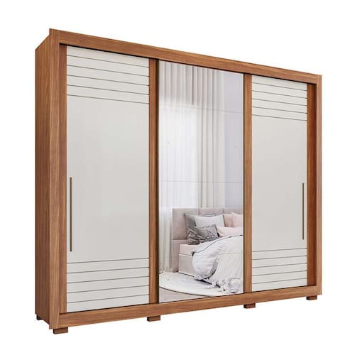que tal o guarda-roupa vitória? ter um quarto arrumado e com uma decoração impecável é o desejo de todos, certo? o guarda-roupa vitória é o móvel perfeito para te ajudar a conquistá-lo. espaçoso, ele dispõe de todos os compartimentos necessários para facilitar sua rotina, desde prateleiras até gavetas. externamente, o visual sóbrio contribui para a construção de uma decoração dos sonhos, enquanto o espelho não só adiciona um charme extra, mas também é um grande aliado na hora de se arrumar para sair. agora, a organização do seu cantinho está garantida :) Marca: Modern