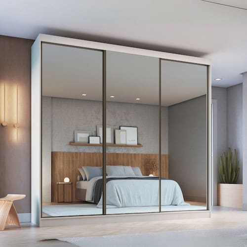 Caracteristicas: 3 Espacos no maleiro 4 Gavetas com corredicas telescopicas de extracao total 10 Nichos 3 Portas de Correr sendo com espelhos Cabideiro em aluminio Estrutura 100 em MDF 15mm Portas deslizantes com sistema amortecedor anti-impacto, proporcionando um fechamento suave e silencioso Puxador perfil em aluminio