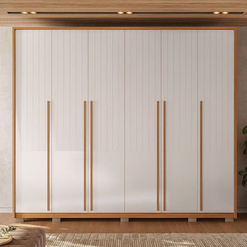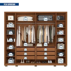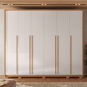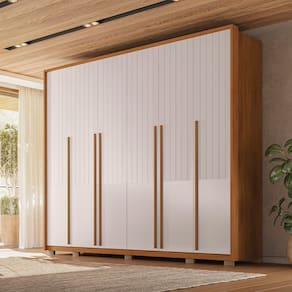 O Roupeiro Suburban Gold, da Espresso Móveis é um móvel de design moderno e funcional, ideal para quem busca por espaço e organização para suas roupas e pertences pessoais. Fabricado em 100% MDF que garante toda resistência e durabilidade, suas dobradiças de 35 mm, cabideiro em alumínio, gavetas amplas com corrediças telescópicas e puxadores em MDF permitirá o bom funcionamento para sua rotina. Os pés e sapatas são opcionais podendo escolher usar durante a montagem. O detalhe do baixo ripado dá um toque especial e moderno ao móvel e ao seu quarto. Acabamento da Prateleira: Pintura UV Escala de Brilho da Prateleira: Fosco Possui Cabideiros: Sim Acabamento da Gaveta: Pintura UV Escala de Brilho da Gaveta: Fosco Tipo de Corrediça: Metálica Telescópica Material do Puxador da Gaveta: MDF Possui Organizador de Gaveta: Não Acabamento da Porta: Pintura UV Escala de Brilho da Porta: Fosco Material do Puxador da Porta: MDF Acabamento dos Pés: Laca Altura dos Pés: 5 cm Altura Máxima dos Pés: 5.0000 Ambiente Principal: Quarto codigo_ean: 7909903477991 Complexidade da Montagem: Média: pode ser montado por mais de uma pessoa e/ou necessite de maior conhecimento para montagem Cor: res_atr_freijo_offwhite Cor do Produto: res_atr_freijo_offwhite Cor do Puxador: Bege Cor Flex: Não Cor Interna: Louro Freijó Escala de Brilho: Fosco Espessura da Estrutura (mm): 25 mm Espessura das Portas (mm): 15 mm Espessura das Prateleiras (mm): 15 mm Espessura do Fundo (mm): 3 mm Espessura do Fundo das Gavetas (mm): 3 mm Gaveta com Chave: Não Itens Inclusos: 1 Guarda Roupa, Kit ferragens e Manual de Montagem Linha ou Coleção: Rooms Manual de Especificação Técnica: https://product-hub-prd.madeiramadeira.com.br/875611/documents/689f875c-902f-4d8d-8485-bca0467f0072ftroupeiroespartacus276g6p.pdf Manual de Montagem e Instalação: https://product-hub-prd.madeiramadeira.com.br/875611/documents/29084a6f-d11d-4ce7-b4df-5ac41f17a43cqroupeiroespartacusediCAoa.pdf Marca: Espresso Móveis Material da Gaveta: MDF Material da Porta: MDF Material da Prateleira: MDF Material dos Pés: MDF Material Principal: MDF modular: Não Montagem Flex: Não Necessita Montagem: Sim Nicho com Cabideiro: Sim Origem do Produto: Nacional Peso: 181,5 kg Peso Máximo por Gaveta: 4 kg Peso Máximo por Prateleira: 8 kg Porta Janelada: Não Possui Calceiros: Não Possui Capelinha: Não Possui Espaço para Vestidos Longos: Não Possui Espelho: Não Possui Espelho Interno: Não Possui Ganchos: Não Possui iluminação: Não Possui Painel de TV: Não Possui Penteadeira: Não Possui Pés: 08 Possui Portas: Sim Possui Prateleiras: Sim Possui Sapateira: Não Produto Montado: Sim Quantidade de Cabideiros: 02 Cabideiros Quantidade de Gavetas: 06 Gavetas Quantidade de Prateleiras: 14 Prateleiras Recomendações de Uso, Manutenção e Limpeza: Limpar com pano macio levemente umedecido e em seguida pano macio seco. Não utilizar produtos abrasivos (lixas, esponjas) e/ou produtos a base de solventes (thinner, aguarrás). Sapatas Niveladoras: Sim Sistema de Montagem: Utiliza-se na montagem do produto sistema de fixação minifix, dobradiças, dispositivos angulares, cavilhas, parafusos, porcas cilindricas, entre outros; Suporta Até (kg): 68 kg Tipo de Corrediça da Gaveta: Metálica Telescópica Tipo de Dobradiça/Corrediça da Porta: Telescópica Tipo de Gaveta: Interna Tipo de Guarda-Roupa: Casal Tipo de Puxador da Gaveta: Embutido Tipo de Puxador da Porta: Externo