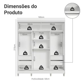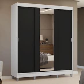 Essa versão possui três portas de correr, sendo uma com espelho, oferecendo praticidade no dia a dia e ajudando a ampliar o ambiente. Os trilhos de alumínio garantem deslizamento suave. Conta com quatro gavetas espaçosas com corrediças metálicas e três cabideiros, ideais para roupas, acessórios e outros itens, mantendo tudo organizado.