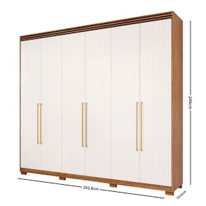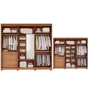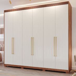 Características: Estrutura 100 em MDF Acabamento Grafiato 6 Portas 5 Gavetas internas Corrediças telescópicas Moldura superior ripada Puxadores em alumínio Dobradiças com amortecimento Espelho interno Cabideiro em alumínio Pés em ABS