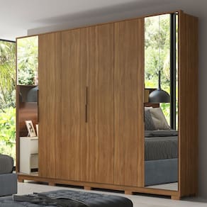Em busca de um guarda roupa espaçoso e elegante para completar seu quarto e ainda não achou? Fica tranquilo e venha conferir o que temos para você!Guarda Roupa Casal Atrice, feito em MDP faz com que todos os detalhes sejam de ótima qualidade, ele possui os compartimentos ideais para acomodar todas as coisas, desde as roupas até os acessórios.Perfeito para decorar seu dormitório, o Guarda Roupa Atrice vem com amplo espaço interno devido as repartições serem bem distribuídas, esse roupeiro conta com 6 gavetas, 3 cabideiros. 4 prateleiras, lugares para organizar os sapatos e um grande maleiro para deixar os enxovais arrumados e também 6 portas com abertura convencional, sendo que duas delas vem acompanhada de espelhos e o design dos pés dá aquele toque de modernidade e elegância ao ambiente de descanso.Gostou do que viu? Corra e garanta esse excelente guarda roupa!EspecificaçõesDimensões do Produto:Largura: 267 cm.Altura: 235 cm.Profundidade: 55 cm.Peso: 234,12 Kg.Características dos Produtos:Material da Estrutura: MDP.Peso Suportado: 5kg tampo, 4kg por prateleira, 4kg por gaveta, 8kg base.Acabamento: Pintura UV.Escala de Brilho: Fosco.Possui Pés: Sim.Possui Gaveta: Sim.Quantidade de Gavetas: 6 Gavetas.Tipo de Corrediça: Telescópica.Possui Prateleiras: Sim.Quantidade de Prateleiras: 4 Prateleiras.Possui Portas: Sim.Quantidade de Portas: 6 Portas.Tipo de Portas: Convencional.Possui Cabideiros: Sim.Quantidade de Cabideiros: 3 Cabideiros.Possui Espelhos: Convencional.Quantidade de Espelhos: 2 Espelhos.Diferenciais:- Design Moderno.- Amplo espaço interno.- Tem um maleiro espaçoso.- Pés quadrado em plástico.-Sistema de montagem: Parafusos/ Cavilhas/ Pregos.Manual de montagem: Sim.Complexidade da Montagem: Alta.Conteúdo da Embalagem: 1 Roupeiro.Volumes: 6 Volumes.Garantia do fabricante: 90 dias contra defeito de fabricação.Montagem: Aconselhamos que seja feita por um profissional.Recomendação de limpeza: Utilize pano levemente úmido.Observações importantes:- Produto para uso residencial em ambiente interno, não devendo ficar exposto diretamente ao sol, calor e umidades excessivas.- Pode haver alguma diferença de tonalidade entre a imagem e o produto real, por conta do tratamento de imagens e a calibração de cores do seu monitor.- As imagens são meramente ilustrativas, não acompanham objetos de decoração e eletrônicos.- Confira o estado da embalagem, não devendo assinar o comprovante em caso de danos.- Não asseguramos, no ato da entrega, por subir escadas/elevadores, pelo transporte por guincho em apartamentos ou montagem, desmontagem e instalações. Eventuais despesas são por conta do comprador.- Confira as dimensões do produto e certifique-se de que passará normalmente por supostos elevadores, portas, escadas e/ou corredores de sua residência.