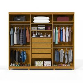O Guarda-Roupa Absolut New Ripado é perfeito para quem busca combinar estética e utilidade. Com um design exclusivo, ele apresenta linhas geométricas arrojadas que conferem um toque moderno à peça. O destaque fica por conta dos puxadores dourados e da porta lateral com acabamento em ripas autênticas. Internamente, ele oferece um amplo espaço, com quatro grandes gavetas de corrediças telescópicas e prateleiras para organização.