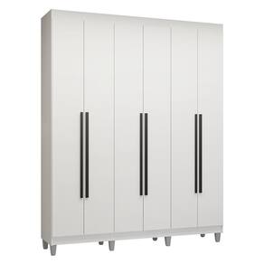 Com acabamento de alta resistência, o Guarda-Roupa Venus garante durabilidade por muito mais tempo. A estrutura branca e os puxadores em preto criam um visual sofisticado, que se adapta a qualquer estilo de decoração. Os puxadores de 80 cm, fabricados em MDF, são um dos grandes diferenciais, trazendo um design alongado e moderno. Os pés resistentes em polipropileno elevam o móvel, conferindo elegância e facilitando a limpeza do ambiente.