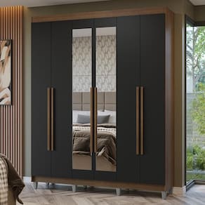 - Um Guarda-Roupa com seis portas batentes, sendo duas com espelho
