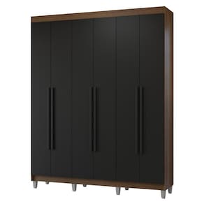 Guarda-roupa Casal Com Pés 6 Portas Batentes Rustic-preto-preto Netuno Madesa