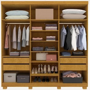 Características: Estrutura em MDF 6 Portas com vidro reflecta 4 Gavetas internas Corrediças telescópicas Puxadores em MDF e metálicos LED Sapateira inclinada Pés Cada prateleira suporta até 5kg Cada gaveta suporta até 5kg