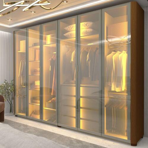 Características: Estrutura em MDF 6 Portas com vidro reflecta 4 Gavetas internas Corrediças telescópicas Dobradiças slow motion LED Pés Cada prateleira suporta até 5kg Cada gaveta suporta até 5kg