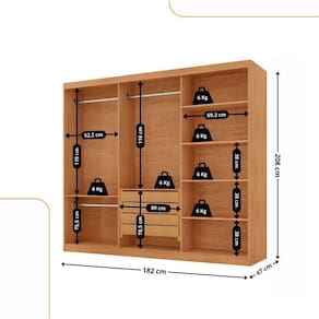 Dimensoes do Roupeiro: Altura: 208 cm Largura: 182 cm Profundidade: 47 cm