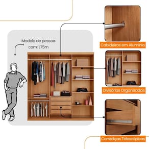 Caracteristicas: Material da Estrutura: 100 MDF Tipo de Acabamento: Pintura UV Material das Corredicas: Telescopica Material dos Cabideiros: Aluminio Possui espelho: Nao