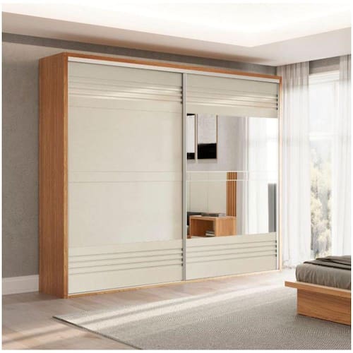 Guarda Roupa Casal Dalla Costa 2 Portas De Correr Com Espelho Freijo/off White