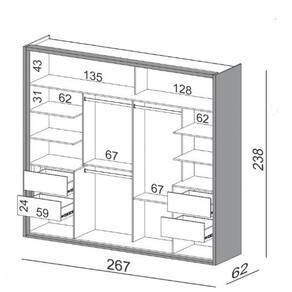 Dimensões do produto: Altura: 238 cm Largura: 267 cm Profundidade: 62 cm