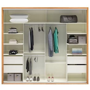 Modelo: TW603E Material (Composição): 100 MDF Com Pintura UV MDF 6mm costa e fundo MDF 15mm estrutura MDF 25mm rodapé 2 Portas de correr 4 gavetas internas 1 porta com espelho Corrediça telescopia