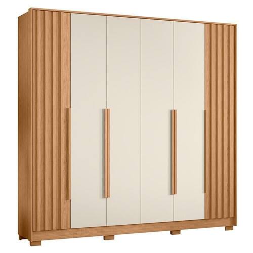 Guarda Roupa Casal Deville Ripado 6 Portas Freijó/off White - Móveis Albatroz Freijó/off White Guarda Roupa Casal Deville Ripado 6 Portas - Móveis Albatroz O Guarda-Roupa Casal Deville Ripado 6 Portas da Móveis Albatroz é a escolha ideal para quem busca elegância e organização no quarto. Produzido em MDP com pintura UV, combina resistência e acabamento sofisticado. Conta com seis portas equipadas com dobradiças metálicas e puxadores em MDF revestido, garantindo praticidade e um visual moderno. Possui quatro gavetas espaçosas com corrediças telescópicas para um deslizamento suave, além de cabideiros em alumínio que oferecem melhor disposição para roupas e acessórios. Sua moldura de 15mm agrega um toque refinado ao design, enquanto os pés em ABS proporcionam estabilidade e facilitam a limpeza. Com amplo espaço interno, é perfeito para manter tudo organizado com estilo e funcionalidade. ESPECIFICAÇÕES: - Estrutura em MDP - Pintura UV - 6 Portas - Dobradiças metálicas - Puxadores em MDF revestido nas portas - 4 Gavetas - Corrediças telescópicas - Cabideiros em alumínio - Moldura de 15mm - Pés em ABS - Amplo espaço interno