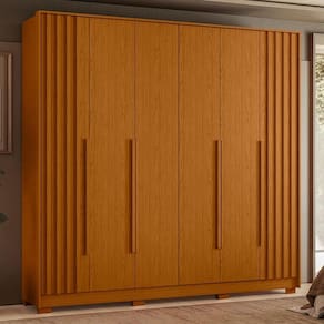 Guarda Roupa Casal Deville Ripado 6 Portas - Móveis Albatroz O Guarda-Roupa Casal Deville Ripado 6 Portas da Móveis Albatroz é a escolha ideal para quem busca elegância e organização no quarto. Produzido em MDP com pintura UV, combina resistência e acabamento sofisticado. Conta com seis portas equipadas com dobradiças metálicas e puxadores em MDF revestido, garantindo praticidade e um visual moderno. Possui quatro gavetas espaçosas com corrediças telescópicas para um deslizamento suave, além de cabideiros em alumínio que oferecem melhor disposição para roupas e acessórios. Sua moldura de 15mm agrega um toque refinado ao design, enquanto os pés em ABS proporcionam estabilidade e facilitam a limpeza. Com amplo espaço interno, é perfeito para manter tudo organizado com estilo e funcionalidade.