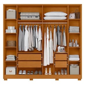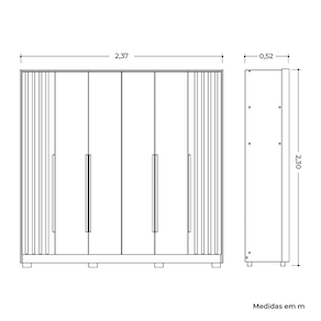 ESPECIFICAÇÕES: Estrutura em MDP Pintura UV 6 Portas Dobradiças metálicas Puxadores em MDF revestido nas portas 4 Gavetas Corrediças telescópicas Cabideiros em alumínio Moldura de 15mm Pés em ABS Amplo espaço interno
