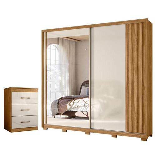 Guarda Roupa Casal Dhara 2 Portas Freijó Off White com Espelho - Moval