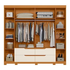 Transforme o seu quarto com o Guarda Roupa Casal Doble de 4 Portas e 4 Gavetas. Construído com uma estrutura robusta em MDP e finalizado com uma elegante pintura UV, este guarda-roupa combina durabilidade e estilo. As 4 portas, equipadas com dobradiças metálicas, abrem para revelar um amplo espaço interno, enquanto as portas laterais com acabamento ripado adicionam um toque de sofisticação. Com 4 gavetas, corrediças telescópicas e puxadores em cava, a organização é simples e eficaz. Completo com cabideiros em alumínio, prateleiras internas e pés inclusos, o Guarda Roupa Casal Doble é a escolha ideal para elevar o seu ambiente.