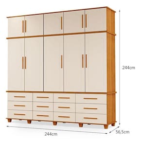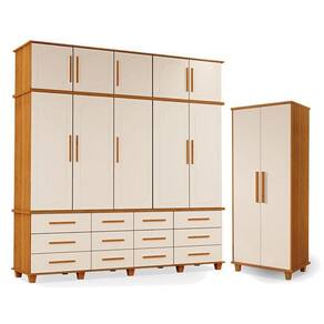 Guarda Roupa Casal e Armário Multiuso Berlim Freijó Off White Luapa Móveis