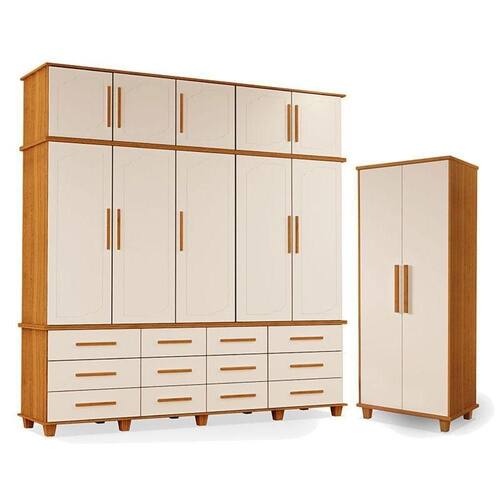 Apresentamos o Guarda Roupa Casal e Armário Multiuso Berlim fabricados pela Luapa Móveis, perfeitos para quem precisa de amplo espaço de armazenamento e organização, oferecendo praticidade e elegância. O Guarda Roupa possui 10 portas, 12 gavetas com corrediças telescópicas, cabideiro em alumínio, prateleiras internas bem distribuídas, maleiro adicional na parte superior para guardar itens maiores, como malas, edredons e roupas de cama, maximizando o aproveitamento do espaço mantendo seu quarto sempre arrumado e pés em madeira. O Armario Multiuso é um móvel ideal para deixar o seu ambiente sempre lindo e organizado, com um grande espaço interno para armazenar e organizar seus mais diversos objetos. Não perca essa chance de organizar seu espaço com estilo, aproveite!