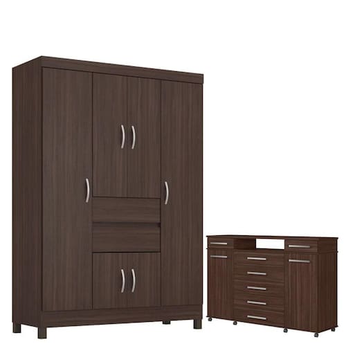 Guarda Roupa Casal Ecom 2 com Cômoda London Café - Demóbile