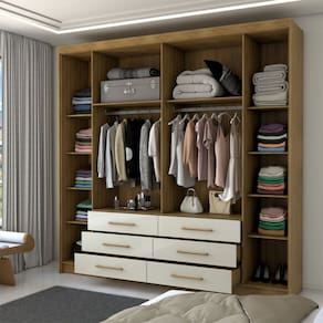 O(a) Guarda-Roupa Casal Ele e Ela 6 Portas 6 Gavetas Nature/Champanhe - Loja é produzido em MDP na escala de brilho Impressão UV, e possui um grau de dificuldade de montagem: Médio.