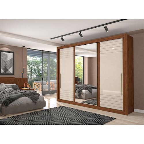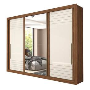Guarda Roupa Casal em MDF 3 Portas de Correr com Espelho Vitória Panan Móveis Avelã/Off White