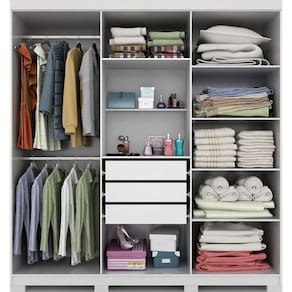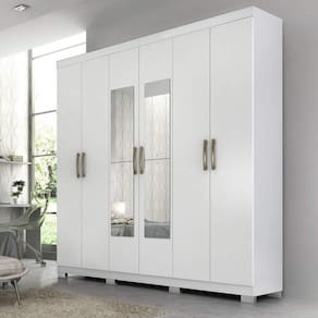 O Guarda Roupa Clara 100% MDF agrega elegância ao seu ambiente, com divisórias internas pensadas para uma perfeita organização e uso compartilhado. Portas com puxadores em ABS na cor bronze e kit com 4 espelhos. Contém 3 gavetas internas com corrediças telescópicas, os cabideiros são em alumínio com suportes metálicos. Este produto acompanha kit com 8 pés. Acabamento da Prateleira: Verniz Escala de Brilho da Prateleira: Brilhante Possui Cabideiros: 02 Acabamento da Gaveta: Verniz Escala de Brilho da Gaveta: Brilhante Material do Puxador da Gaveta: Possui Organizador de Gaveta: Não Acabamento da Porta: Verniz Escala de Brilho da Porta: Brilhante Material do Puxador da Porta: ABS Acabamento dos Pés: Pintura Acompanha Cama Auxiliar: Acompanha Colchão: Altura da Cama: Altura do Espelho: 65 Altura do Espelho 01: Altura do Espelho 02: Altura do Espelho 03: Altura do Espelho 04: Altura do Espelho 05: Altura do Espelho 06: Altura dos Pés: 5 Ambiente Principal: Quarto Cama Auxiliar Acompanha Colchão: Cama Auxiliar Suporta Até (kg): Cama Suporta Até (kg): Complexidade da Montagem: Alta: deve ser montado por um montador especializado Cor: Branco Cor do Produto: Branco Cor Flex: Cor Interna: Branco Escala de Brilho: Brilhante Espessura do Espelho: 3 Fita Integrada: Formato do Espelho: Retangular Gaveta com Chave: Não Guarda-Roupa Suporta Até (kg): 60 Informações Complementares: Itens Inclusos: 1 Guarda Roupa e Manual de Montagem. Largura da Cama: Largura do Espelho: 25 Largura do Espelho 01: Largura do Espelho 02: Largura do Espelho 03: Largura do Espelho 04: Largura do Espelho 05: Largura do Espelho 06: Linha ou Coleção: Clara Manual de Especificação Técnica: Manual de Montagem e Instalação: https://cdn2.madeiramadeira.com.br/atributo/panan-m-veis/875078-roupeiro-clara-6-portas-flex-telesc-pica.pdf Material da Gaveta: MDF Material da Porta: MDF Material da Prateleira: MDF Material dos Pés: ABS Material Principal: MDF Montagem Flex: Não Necessita Montagem: Sim Origem do Produto: Nacional Peso: 126,5 Peso Máximo por Gaveta: 5 Peso Máximo por Prateleira: 5 Possui Calceiros: Não Possui Espaço para Vestidos Longos: Possui Espelho: Sim Possui Espelho Interno: Possui Ganchos: Possui iluminação: Possui Painel de TV: Possui Pés: 08 Possui Portas: 06 Possui Prateleiras: 06 Possui Sapateira: Profundida de Cama: Quantidade de Espelho: 04 Espelhos com Tamanhos Iguais Recomendações de Uso, Manutenção e Limpeza: Limpeza com pano levemente umedecido em seguida flanela seca. Não aplicar qualquer produto de limpeza ou cera. Sapatas Niveladoras: Não Sistema de Montagem: Parafusos, cavilhas, miniflix, prego, pino doiratório, chave zeta Tamanho: Tamanho do Colchão Indicado (L x C): Tamanho do Colchão Indicado Cama Auxiliar: Tipo de Corrediça da Gaveta: Metálica Telescópica Tipo de Dobradiça/Corrediça da Porta: Alumínio Tipo de Estrado: Tipo de Fixação do Espelho: Parafusos Tipo de Gaveta: Interna Tipo de Guarda-Roupa: Casal Tipo de Madeira Maciça: Tipo de Madeira Maciça da Gaveta: Tipo de Madeira Maciça da Porta: Tipo de Madeira Maciça da Prateleira: Tipo de Madeira Maciça do Puxador da Gaveta: Tipo de Madeira Maciça do Puxador da Porta: Tipo de Madeira Maciça dos Pés: Tipo de Puxador da Gaveta: Não Possui Tipo de Puxador da Porta: Externo