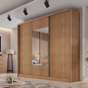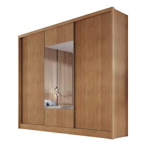 Guarda Roupa Casal em MDF com Espelho 3 Portas de Correr Medelim Novo Horizonte - Marrom