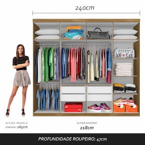 Medidas do Guarda-Roupa Montado: A:218cm | L:240cm | P:47cm