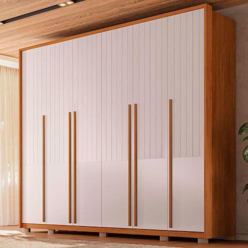 O(a) Guarda-Roupa Casal Espartacus 6 Portas 6 Gavetas Freijó/Off White - Caemmun é produzido em 100% MDF na escala de brilho Fosco, e possui um grau de dificuldade de montagem: Médio.