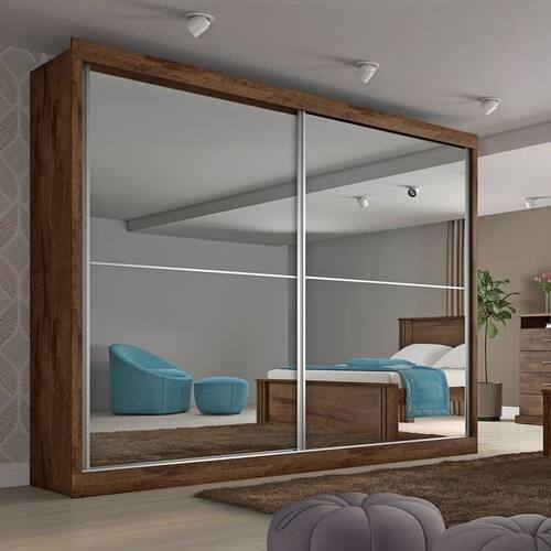 Guarda Roupa Casal Espelhado 2 Portas 4 Gavetas - Verona-Braúna - Made Marcs O Guarda Roupa Verona é o ideal para quem precisa de organização com pouco espaço. Este guarda roupa possui 2 portas de correr com deslizamento em trilho inferior de alumínio, para maior facilidade na abertura. São 04 gavetas com corrediças telescópicas, com abertura total das gavetas e deslizamento silencioso, o suporte de gaveta é de MDF, que proporciona mais resistência. Prateleiras espaçosas para roupas de cama e sapatos. Seu interior conta ainda com um nicho prático e funcional. Cabideiros e calceiro em alumínio, qualidade e durabilidade. As portas são fracionadas com perfil de alumínio, para evitar empeno e traz mais robustez e resistência para seu guarda roupa. Fabricado em MDF 100%, com chapas de 15mm que proporciona mais firmeza ao guarda roupa. E tudo isso com material ecologicamente correto. Perfeito não é? Aproveite!Faz parte deste ambiente:Guarda Roupa Casal Espelhado 2 Portas 4 Gavetas - Verona-Braúna - Made MarcsObs: Objetos de decoração não inclusos.Particularidades do guarda-roupa:Características:- 100% MDF- Divisão Ele e Ela- Perfil de alumínio nas portas- Portas deslizantes com trilho de alumínio- Roldanas com sistema de amortecimento e regulagem- Gavetas com corrediças telescópicas- Cabideiros e calceiros espaçosos- Compartimento para calçados - Excelentes repartições e amplo espaço interno - Portas com perfil de alumínioDimensões:Altura: 2,18 metrosLargura: 2,02 metrosProfundidade: 51 centímetrosInformações Importantes:-O envio desse produto é feito através de transportadora.-Produtos podem apresentar diferenças de tonalidades entre a foto na tela e o produto real, devido a calibração de cor de tela.-Limpar com flanela ou pano macio. Não utilizar álcool. Não utilizar produtos abrasivos ou corrosivos.-Nós prezamos pela qualidade da entrega em primeiro lugar, trabalhamos com transportadoras altamente selecionadas e os melhores materiais de embalagem.-A montagem é de total responsabilidade do comprador. Antes de comprar, verifique o espaço disponível para a montagem.-Certifique-se de que o produto caiba em elevadores e vãos de escadas, não fazemos içamentos. Quaisquer despesas deste tipo ficam a cargo do cliente-Garantia de 3 meses contra defeitos de fabricação.