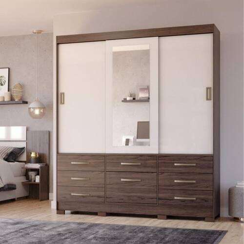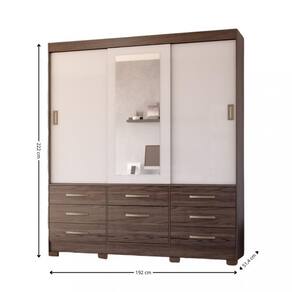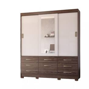 Guarda Roupa Casal Espelho 3 Portas 8 Gavetas Luiza Panan - Marrom