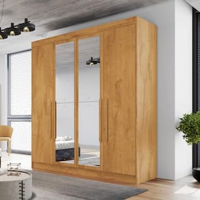 Características: 4 Portas 3 Gavetas, sendo 1 com chave Estrutura em MDF Corrediças telescópicas Prateleira Acabamento em verniz UV Cabideiros de alumínio Puxadores externos em madeira Espelho