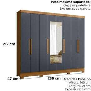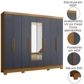 Guarda Roupa Casal Espelho 6 Portas 236 Cm Diplomata Freijo Cinza Moval