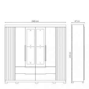 Dimensões: Altura: 230 cm Largura: 240 cm Profundidade: 47 cm Peso: 144,60