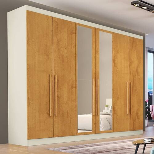 Guarda Roupa Casal com Espelho 6 Portas 6 Gavetas - Oslo-Off White/Peroba - Made Marcs Guarda Roupa Oslo possui um modelo funcional que foi pensado para deixar seu ambiente completo! Possui 06 gavetas com corrediças telescópicas, cabideiros em alumínio, interno ele e ela, puxadores alumínio. Espaço para roupas longas, prateleiras funcionais e maleiro. Uma moldura externa reversível com sistema flex collor, deixando-o ainda mais lindo, moderno e exclusivo. Aproveite! Faz parte deste ambiente: Guarda Roupa Casal com Espelho 6 Portas 6 Gavetas - Oslo-Off White/Peroba - Made Marcs Obs: Objetos de decoração não inclusos. Particularidades do guarda-roupa: Características: - 100% MDF - 6 gavetas - 11 prateleiras - Moldura externa flex collor - Corrediças telescópicas: abertura total das gavetas - Modulação para roupas longas - Compartimento para malas e roupa de cama - Excelente aproveitamento dos espaços internos: ideal para organizar roupas e acessórios de forma prática - Cabideiros e calceiros metálicos Dimensões: Altura: 2,35 metros Largura: 2,10 metros Profundidade: 50 centímetros Informações Importantes: -O envio desse produto é feito através de transportadora. -Produtos podem apresentar diferenças de tonalidades entre a foto na tela e o produto real, devido a calibração de cor de tela. -Limpar com flanela ou pano macio. Não utilizar álcool. Não utilizar produtos abrasivos ou corrosivos. -Nós prezamos pela qualidade da entrega em primeiro lugar, trabalhamos com transportadoras altamente selecionadas e os melhores materiais de embalagem. -A montagem é de total responsabilidade do comprador. Antes de comprar, verifique o espaço disponível para a montagem. -Certifique-se de que o produto caiba em elevadores e vãos de escadas, não fazemos içamentos. Quaisquer despesas deste tipo ficam a cargo do cliente -Garantia de 3 meses contra defeitos de fabricação.