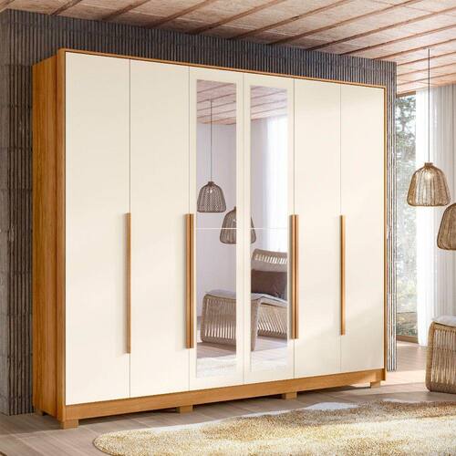 Características: Estrutura em MDP 6 Portas Espelho 6 gavetas com corrediças telescópicas Puxadores de MDF revestidos Cabideiros de alumínio Moldura de 15mm e pés inclusos