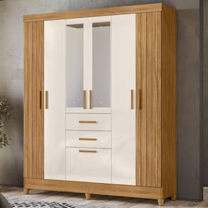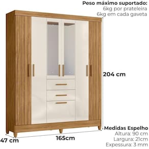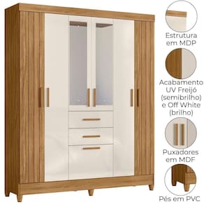 Guarda Roupa Casal Espelho 7 Portas 165 Cm Malta Freijo Off White Friso Moval