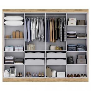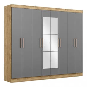 Características: Estrutura em MDF Acabamento em pintura texturizada e verniz fosco 8 Portas 4 Gavetas Prateleiras Puxadores em ABS Corrediças telescópicas Cabideiros em madeira Espelho 480x250x3 6 folhas