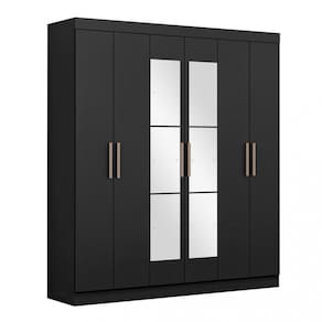 Características: Estrutura do material em MDF 6 Portas Corrediças Telescópicas 2 Cabideiros em madeira 1 Calceiro 2 Gavetas internas 4 Prateleiras Puxadores em Abs 6 espelho 48X25X3 cm